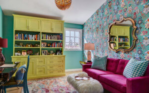The homeowner decided to go for a playful, fantasy like home that are manifested in wall treatments and colorful furniture.