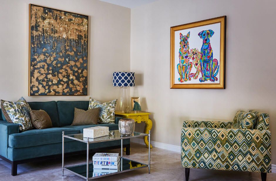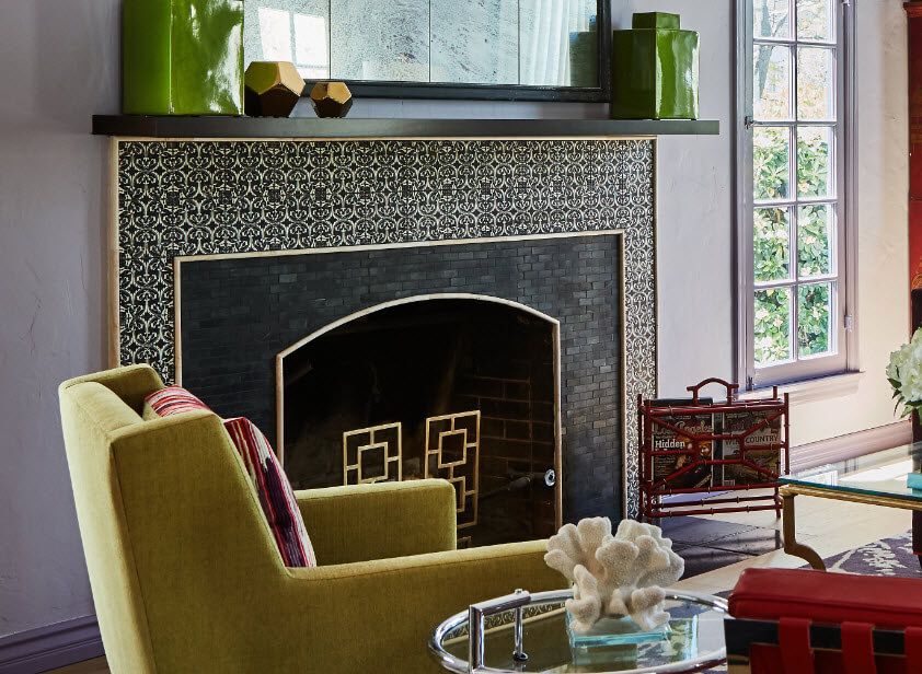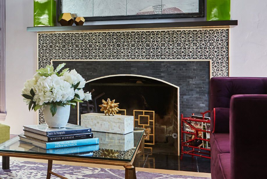 One will never get bored once they’re inside of this ravishing living room! Everywhere you look, there are unique and interesting pieces that will certainly catch your attention. Of course, one will admire the beautiful custom fireplace donned with charcoal black bricks accentuated by the black and white decorative tiles. A definite focal piece of the room.