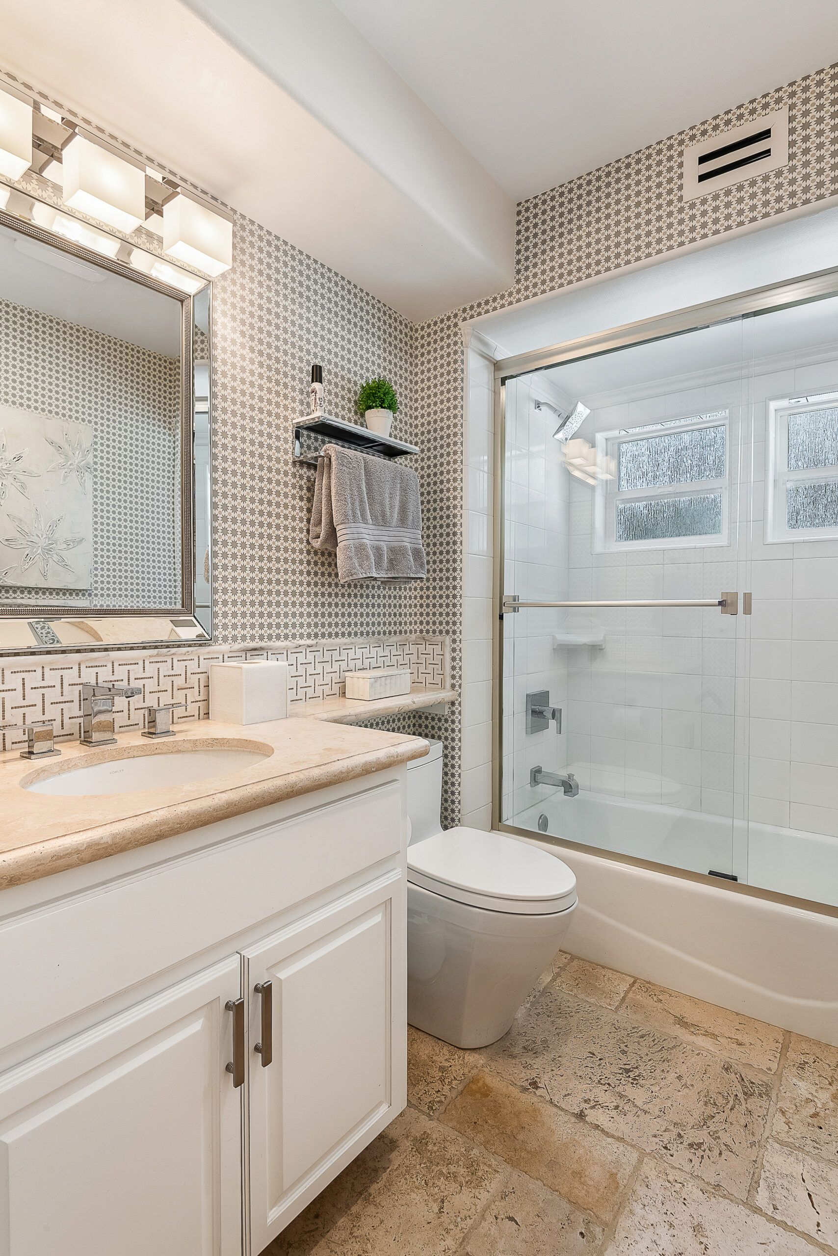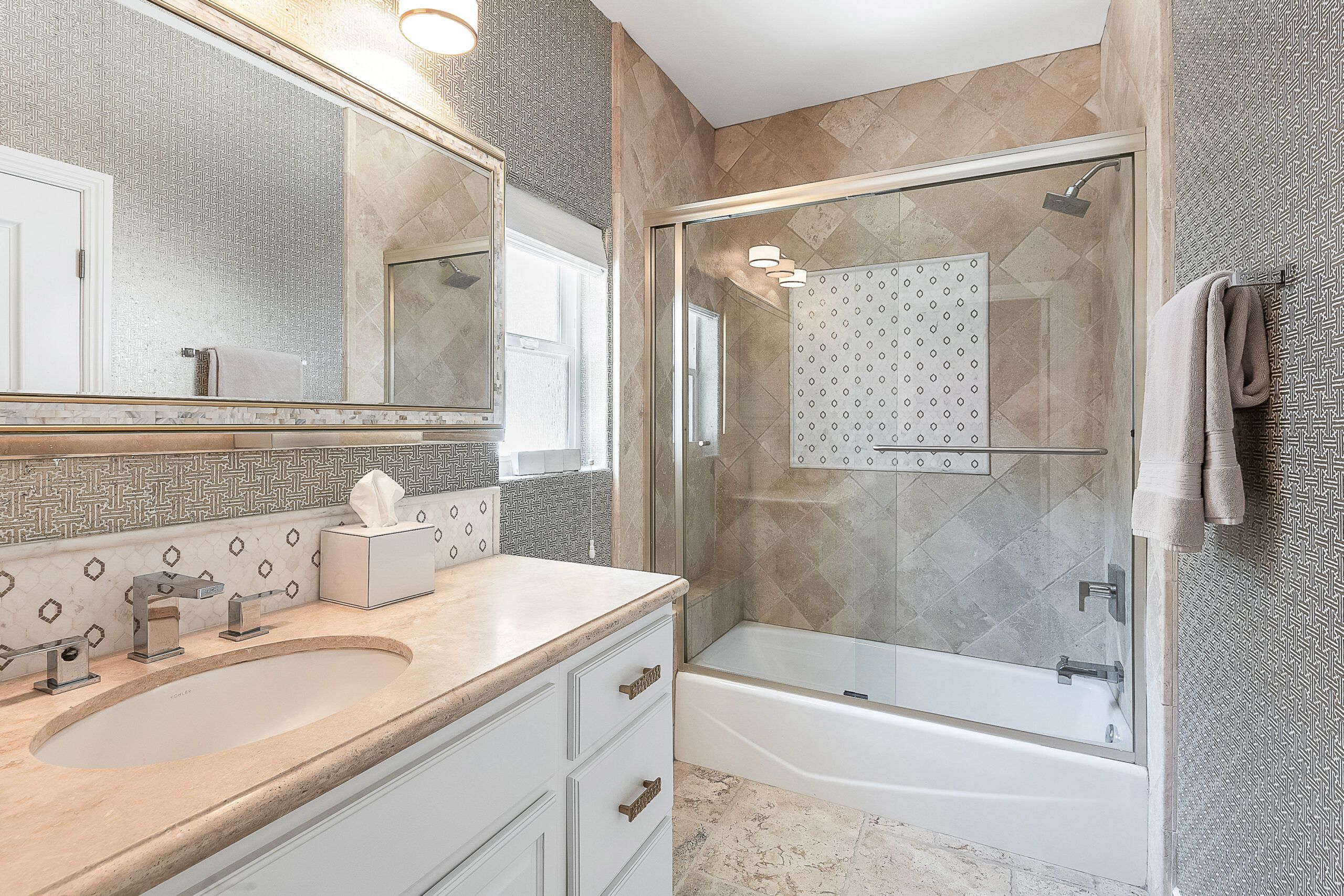 Client wanted and Southern country elegant aesthetic. The flooring, bathroom fixtures and countertops came from the old house and we managed to update it to reflect my client’s taste and personality. Client loved the transformation!