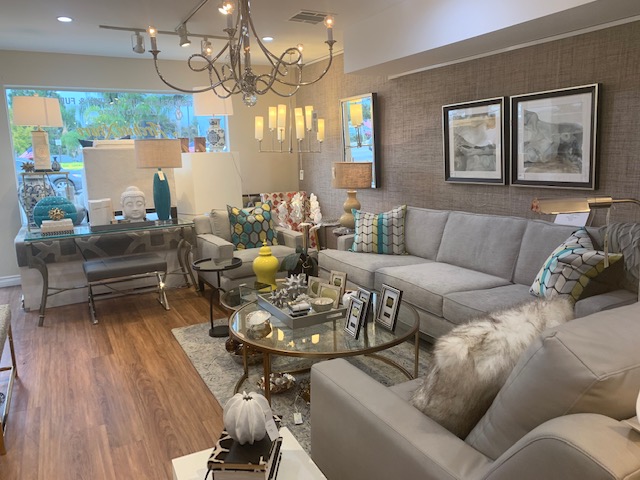 The layout of the store is designed to provide customers with multiple vignettes. Each vignette is carefully planned and coordinated to look as though it were a room in someone’s home. The upholstery, side tables, coffee tables, rugs and accessories, as well as mirrors and art on the wall, are all selected with a particular style, color palate, and point of view in mind. These vignettes have proven extremely effective in helping potential customers and our own interior design clients see what our furniture and decorative accessories look like in a home environment.